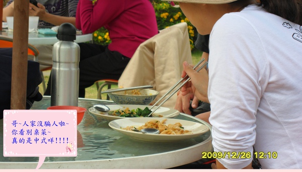 ,饒到本店的後面竟看到有人在辦桌耶,不過騎近一聞卻都是酸菜白肉鍋的味道,再探頭一看,果然真是外面用餐的座位呢~於是大家將愛車一起停放在座位正後面的汽車停車格裡,趕快搶桌佔位啦